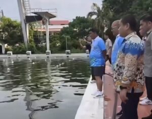 MANADO, Radarmanadoonline.com — Gubernur Sulawesi Utara (Sulut) Yulius Selvanus meninjau langsung kondisi kolam renang di KONI Manado, Sulut, Jumat (10/10/2025).
