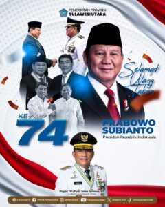 MANADO, Radarmanadoonline.com – Dalam suasana penuh syukur dan rasa hormat, Gubernur Sulawesi Utara (Sulut)m Yulius Selvanus menyampaikan ucapan selamat ulang tahun kepada Presiden Republik Indonesia, Prabowo Subianto, yang hari ini, 17 Oktober 2025 berusia 74 tahun.