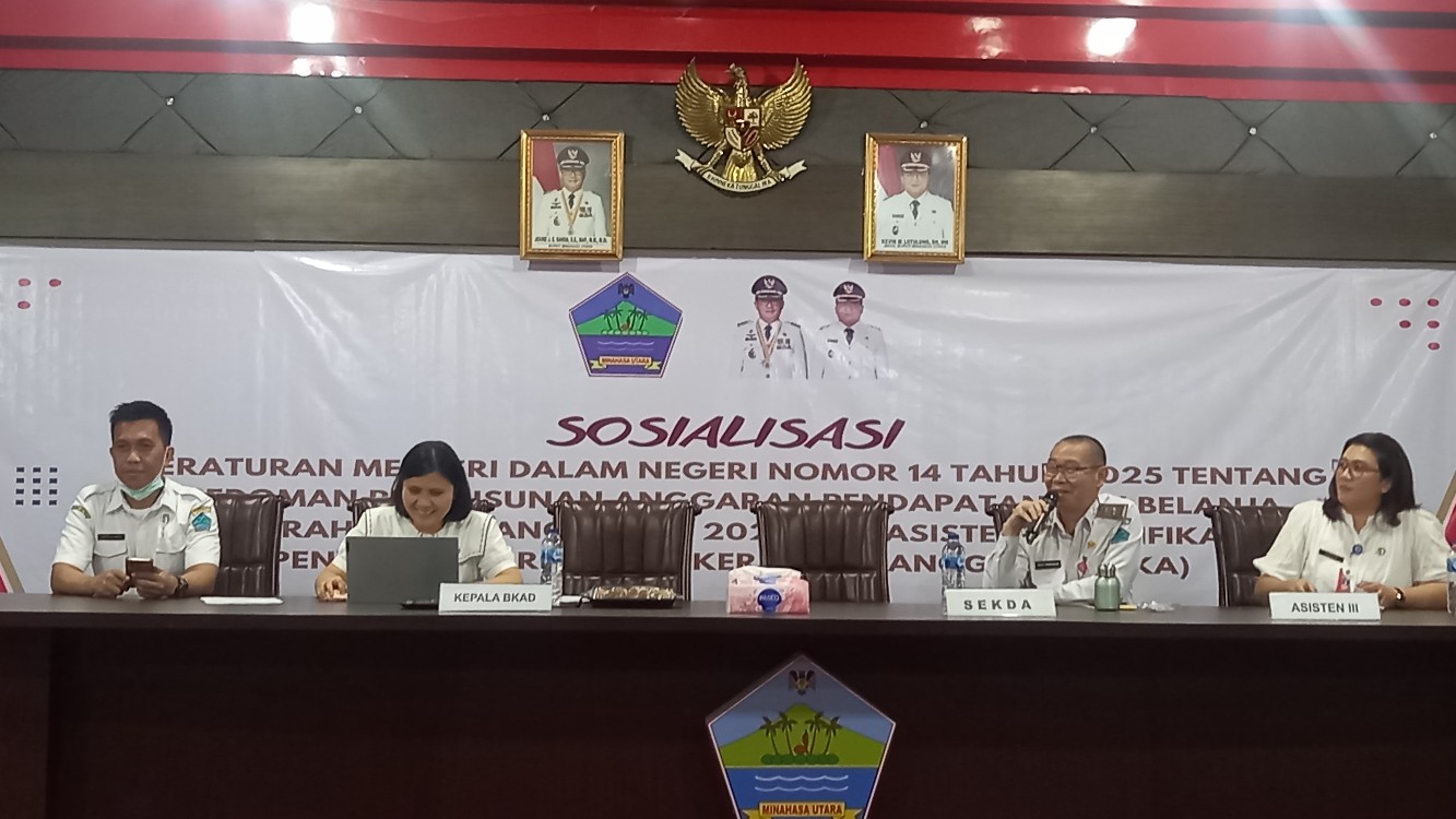 MINUT,Radarmanadoonline.com_ Badan Keuangan dan Aset Daerah (BKAD) Minahasa Utara menggelar Sosialisasi Peraturan Menteri Dalam Negeri (Permendagri) Nomor 14 Tahun 2025 tentang Pedoman Penyusunan APBD Tahun Anggaran 2026, sekaligus Asistensi dan Verifikasi Penyusunan Rencana Kerja dan Anggaran (RKA).