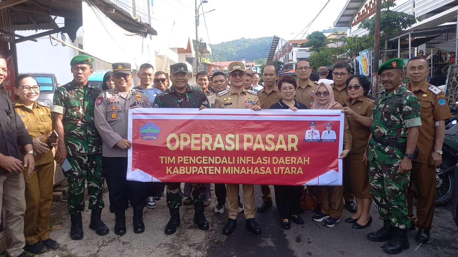 Kegiatan ini ditinjau langsung oleh Bupati Joune Ganda bersama Dandim 1310/Bitung Letkol Inf I Made Dharmawan Juniarta, Ketua DPRD Minut Vonny Rumimpunu, Kepala Dinas Perdagangan Maximelian Tapada, Forkopimda, serta Tim Pengendalian Inflasi Daerah (TPID).