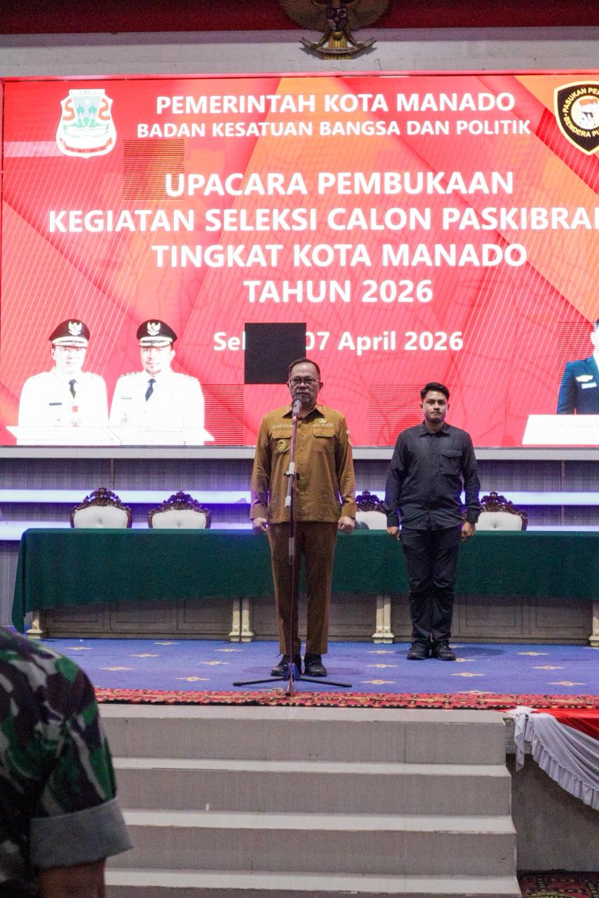 Wakil Wali Kota Manado, Richard Sualang, menghadiri sekaligus membuka secara resmi kegiatan seleksi calon Pasukan Pengibar Bendera Pusaka (Paskibraka) tingkat Kota Manado tahun 2026, Selasa (7/4/2026).