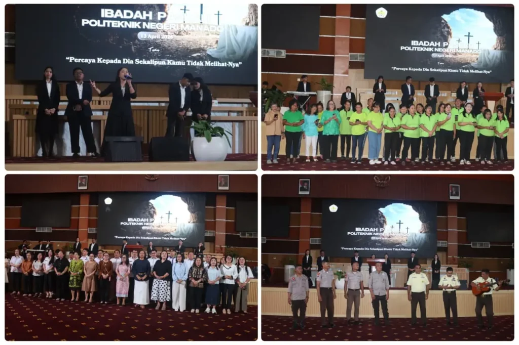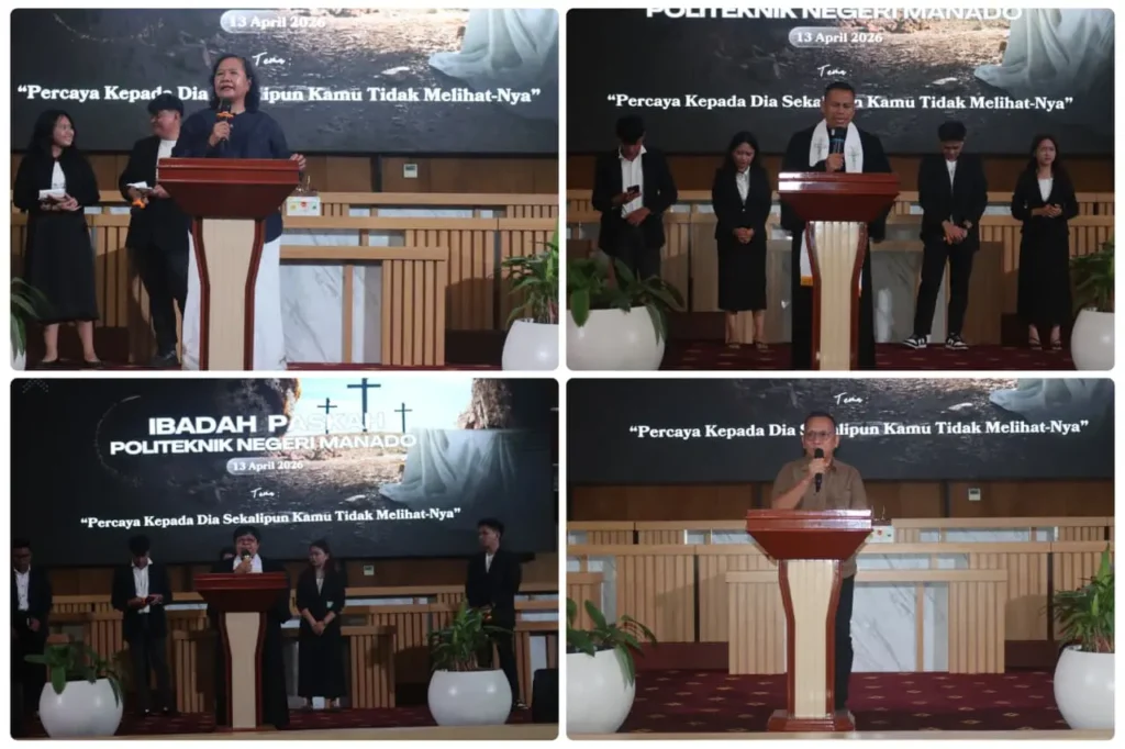 Radarmanadoonline.com, MANADO — Politeknik Negeri Manado (Polimdo) menggelar Ibadah Paskah 2026 pada Senin, 13 April 2026, di Auditorium Prof. Ruddy Tenda. Kegiatan rohani yang berlangsung pada pagi hari itu menjadi bagian dari perayaan Paskah di lingkungan sivitas kampus.
