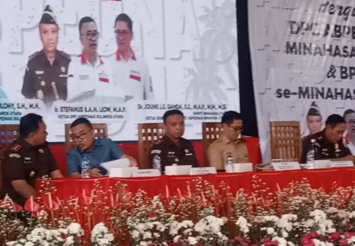 Pertemuan tersebut dihadiri Bupati Minut Joune Ganda yang Dewan Pembina DPC ABPEDNAS Minut, Ketua DPD ABPEDNAS Sulut Stefanus B.A.N. Liow, Asisten Intelijen Kejati Sulut Ery Yudianto, serta Kajari Minahasa Utara Lingga Nuarie.